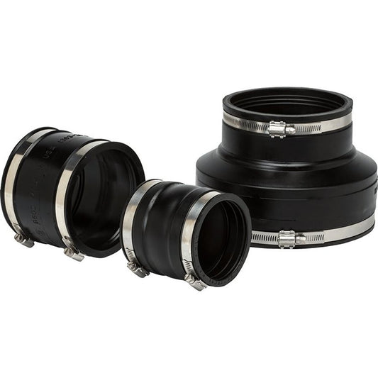 Transition Coupling, 3 x 1-1/2 in, Cast Iron/Plastic x Cast Iron/Plastic, Rubber