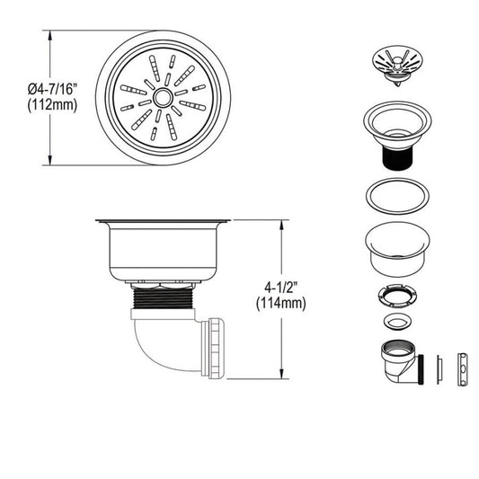3-1/2 in, Drain Fitting Type 304/304L Polished Stainless Steel Steel Body Strainer Basket Tailpiece and Elbow