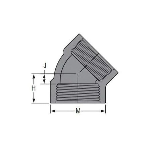 45 deg Elbow, 2 in, FNPT, SCH 80/XH, PVC