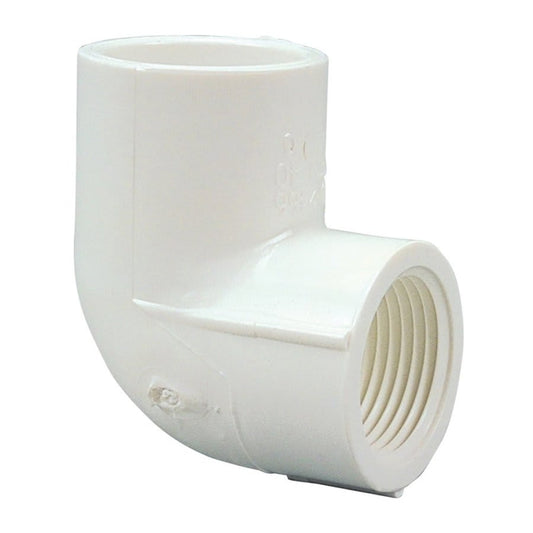 90 deg Elbow, 3/4 x 1/2 in, Socket x FNPT, SCH 40/STD, PVC