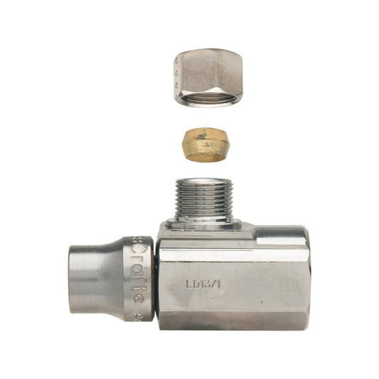 Multi Turn Dual Stop, 5/8 x 1/2 x 3/8 in, Comp x FNPT x Comp, Chrome