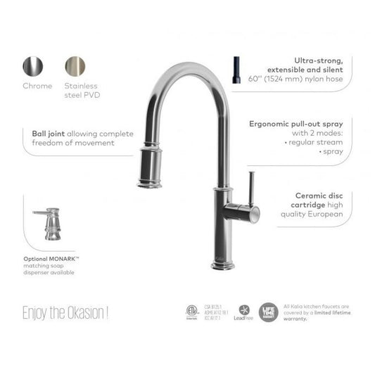 Kitchen Faucet, Deck Mount, ADA, 1 Lever Handle, 1-Hole, Stainless Steel