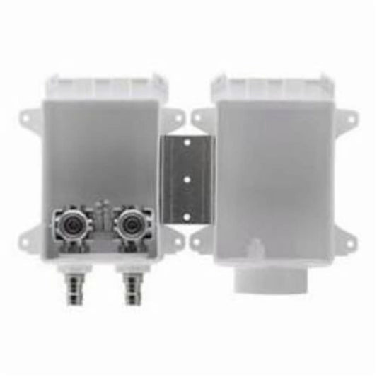 OxBox™ Washing Machine Outlet Box With Arrester, 1/2 in Inlet x 3/4 in, F1807 PEX Crimp Inlet x Double Hose Bibb Outlet, ABS