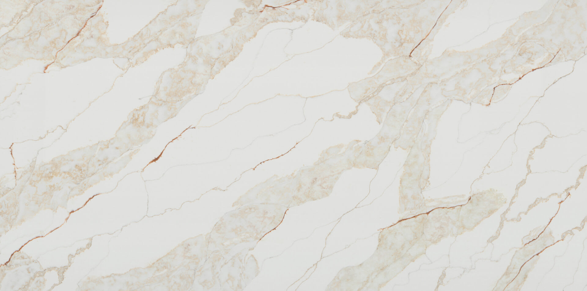 Our Sono Soleil quartz slab is a radiant embodiment of warmth and luminosity that brings the essence of the sunlit sky into you living space. Across its surface, delicate veins in shades of golden yellow and subtle touches of amber create a captivating play of light and shadow, echoing sun-rays dancing on a tranquil afternoon.
