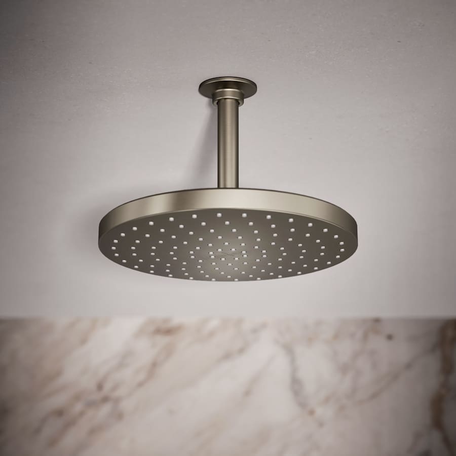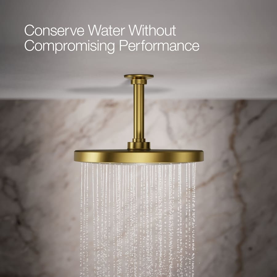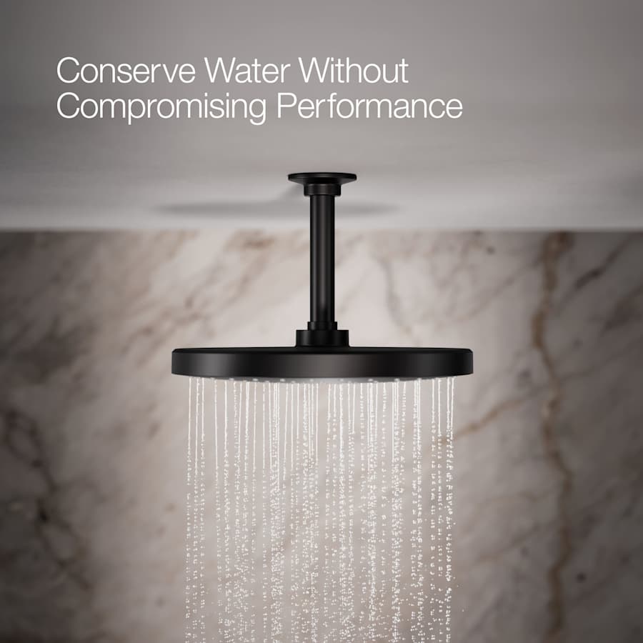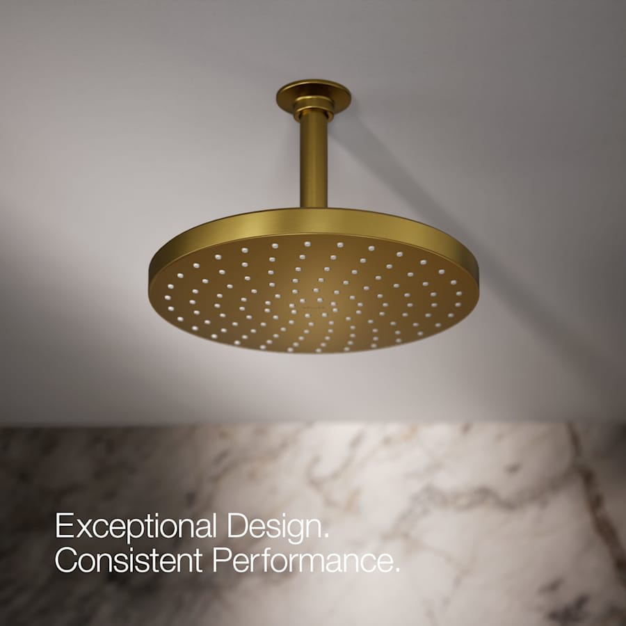 Bring the invigorating freshness of a summer rain to your shower with the Awaken rain head. An optimized spray face with angled nozzles generates a uniform spray pattern with wide, even coverage, simulating the experience of walking in a warm Rain shower. The Awaken rain head can be installed on a wall- or ceiling-mount shower arm, and a swivel joint allows for precise placement of the spray. Its simple and contemporary design complements the Awaken collection.