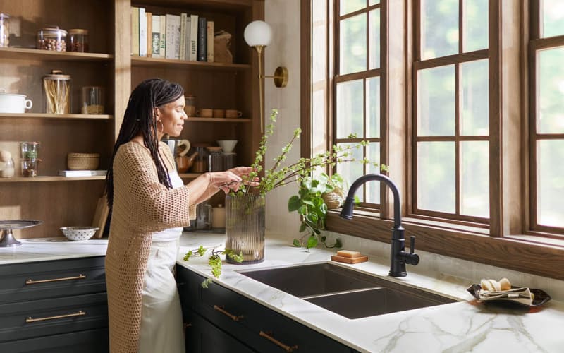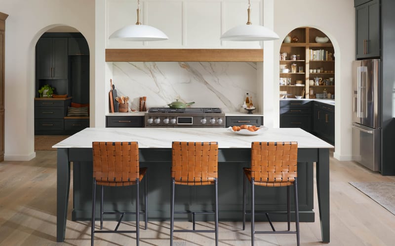 Perfectly balanced veins of rich gold and cool gray sweep across a polished white base, creating a refined, alluring and classic aesthetic. Featuring the sophistication of Calacatta marble in lightweight porcelain, Calacatta Gold is the perfect accompaniment for luxurious indoor and outdoor applications.