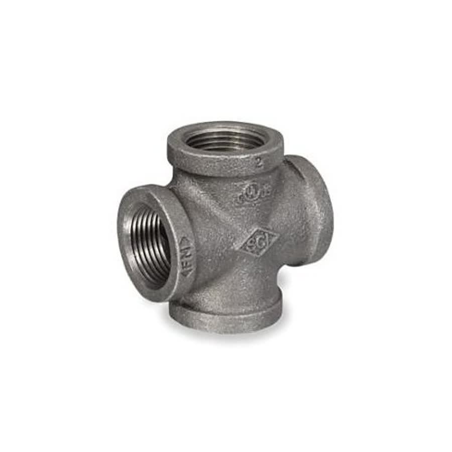 Cross, 3/4 in, FNPT, 150 lb, Malleable Iron, Black