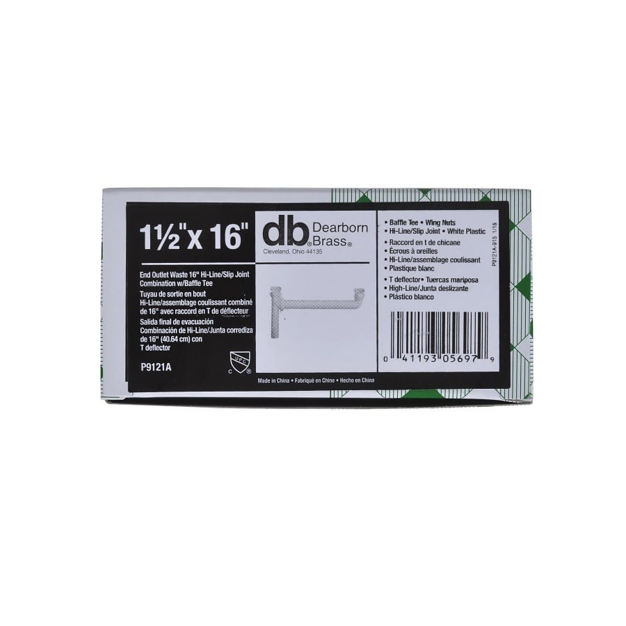 Continuous Waste, End Outlet, 1-1/2 in, PVC, White