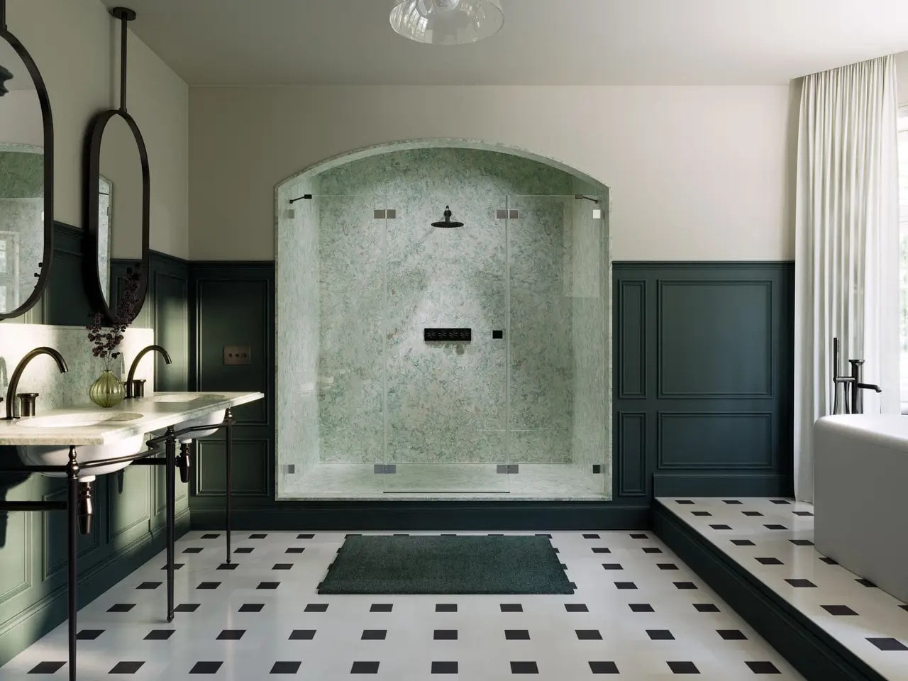 Montgomery is a refined study of whites, ivories, and creams coalescing with subtle, understated veins of seafoam green and a light dusting of pearlescent sparkle.