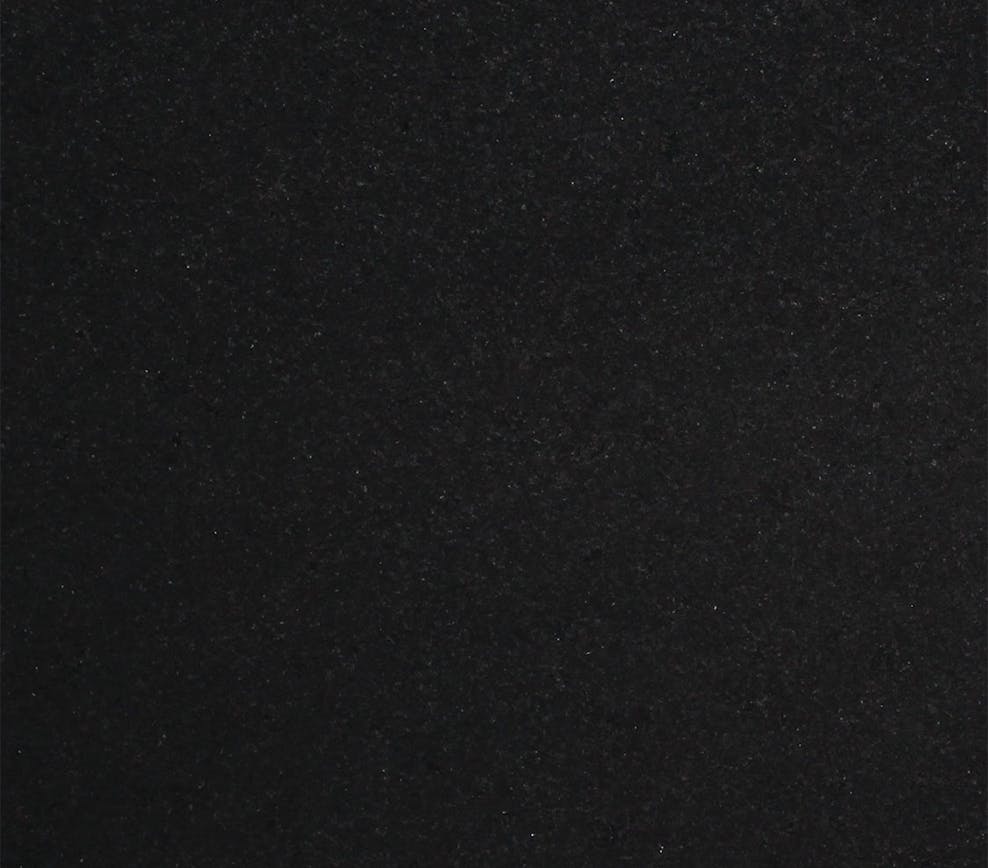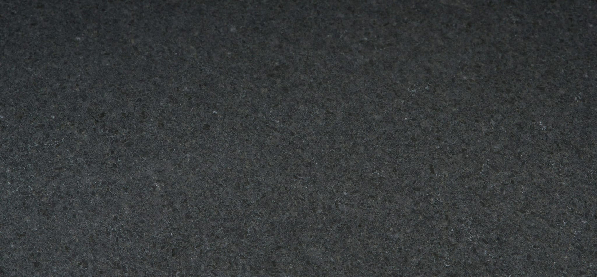 Granite of Brazilian origin with a soft, textured black background and grey and blue mottling.