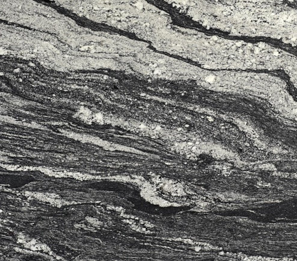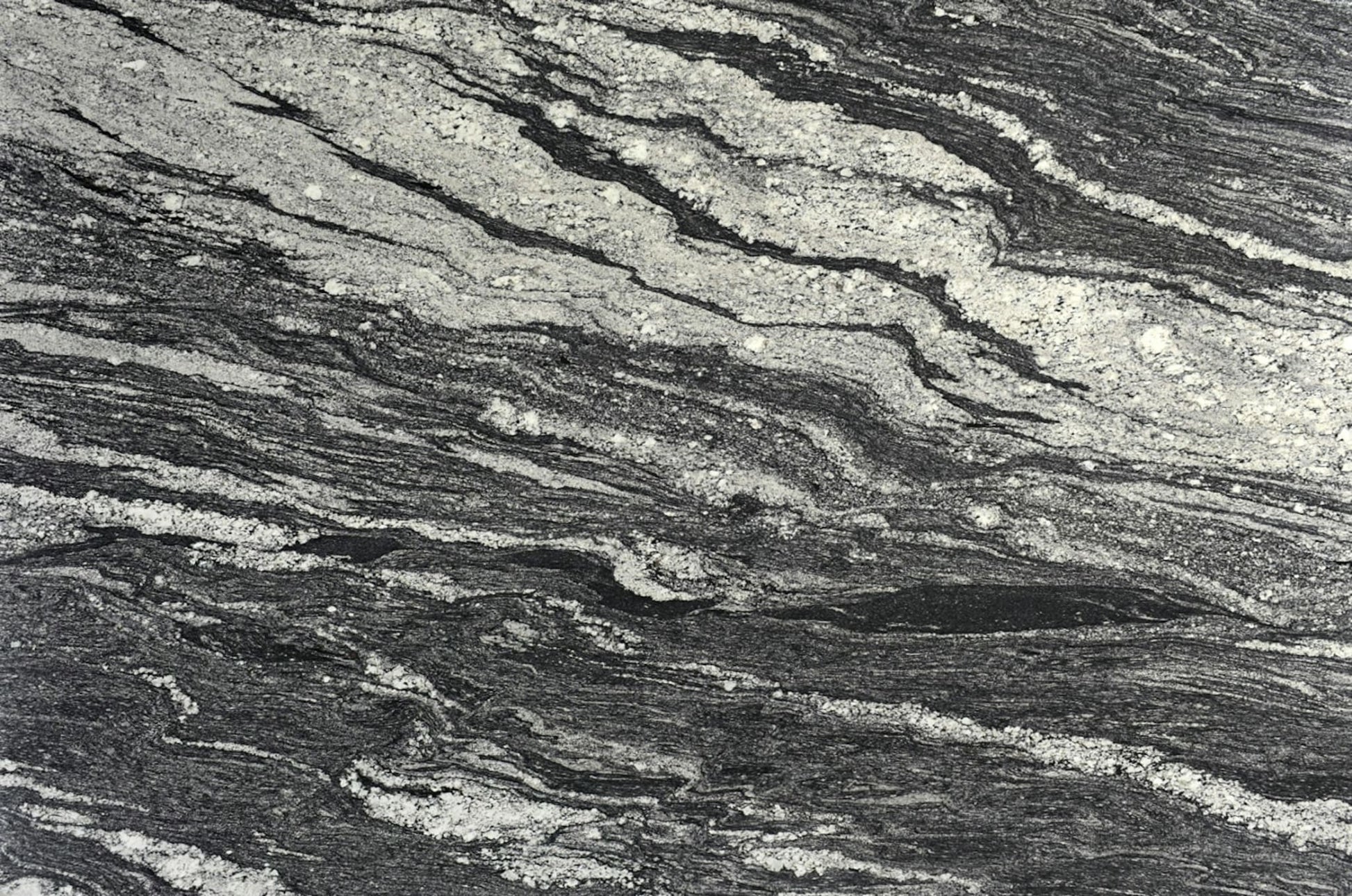 The richly marbleized veining of charcoal, ink, silver and dove gray fall across a snow white background. Waterfall makes a design statement paired with crystal and chrome, black millwork and white ceramic tile.