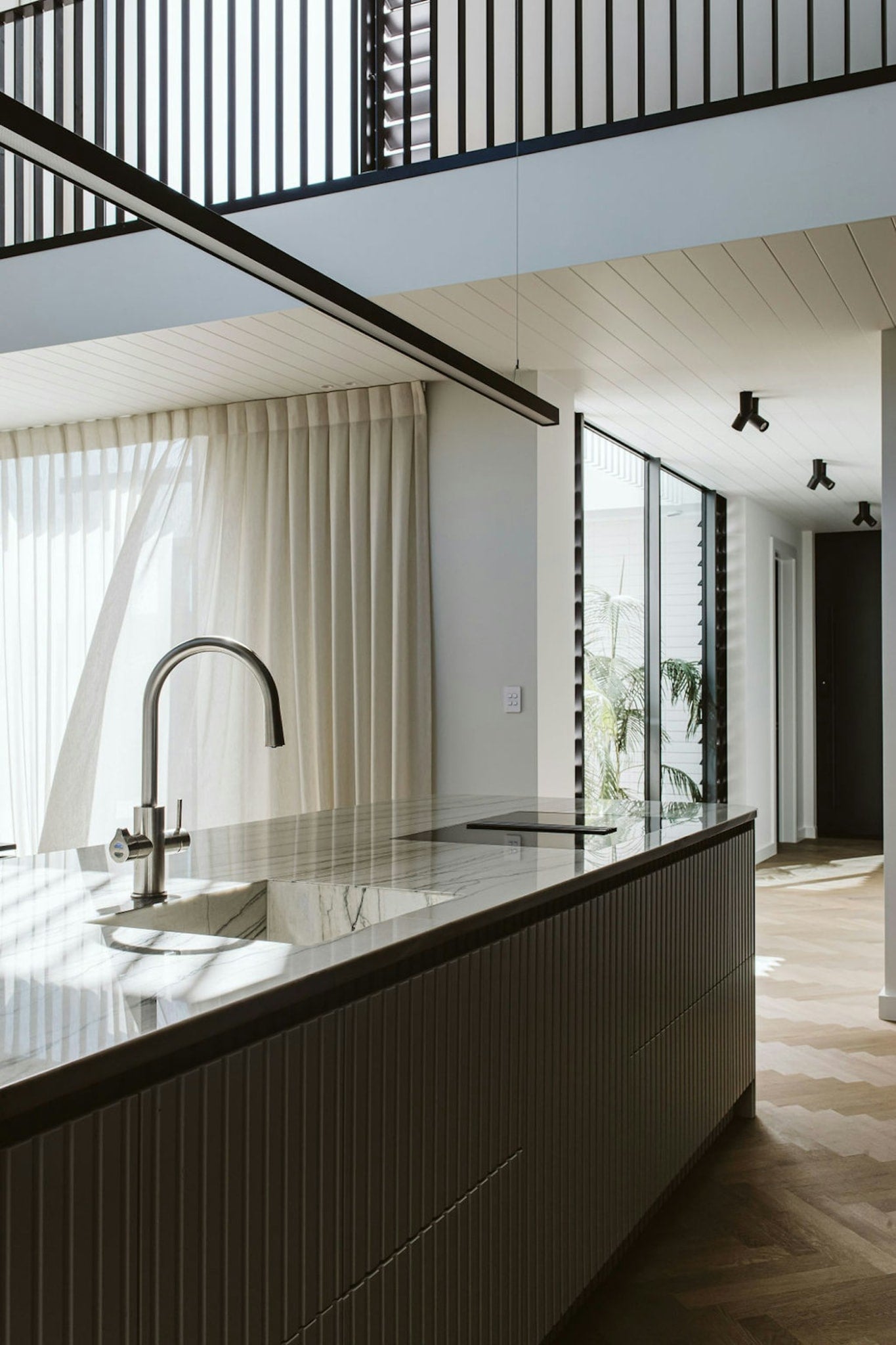 With its fine linear veins in a range of grays, this Brazilian granite with a light background brings elegance and brightness to any space.