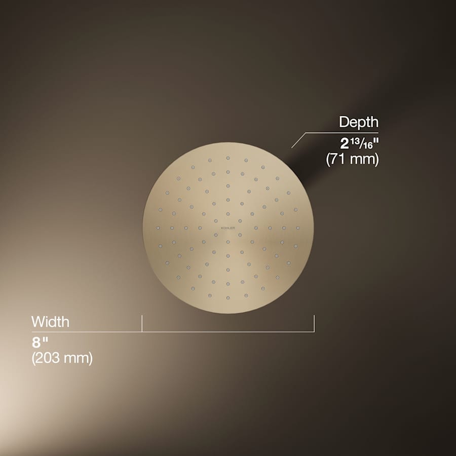 Enjoy a shower that simulates the soaking deluge of a warm summer downpour. This contemporary-style rainhead features innovative Katalyst air-induction technology, which efficiently mixes air and water to produce large water droplets and deliver a powerful, thoroughly drenching overhead shower experience. Its clean good looks and durable finish coordinate with many other KOHLER faucets and accessories.