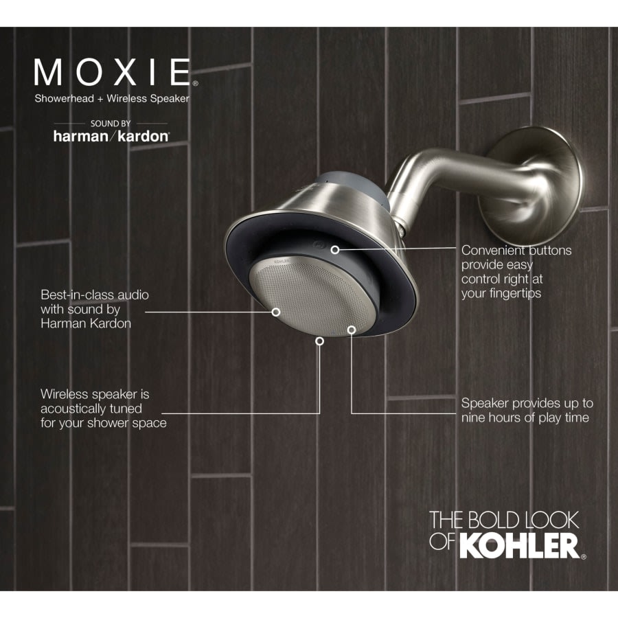 Let superior sound wash over you, with the Moxie showerhead and wireless speaker. Combining a luxurious spray with a best in class high-quality audio speaker with sound by Harman Kardon, the all-new Moxie showerhead and wireless speaker elevates your everyday showering, turning any shower into an immersive sensory experience. Easily gear up or wind down with the perfect soundtrack or your favorite podcast. Plus, the speaker easily removes, so you can bring it wherever you want to go — the beach, a picnic, or just lounging in your backyard. The Moxie showerhead speaker is Bluetooth-enabled to pair with your phone or other device.
