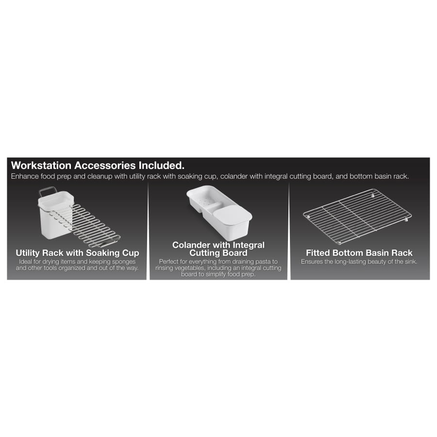 - Sink comes pre-drilled with 5 oversized faucet/accessory holes for faucets with 8" faucet centers