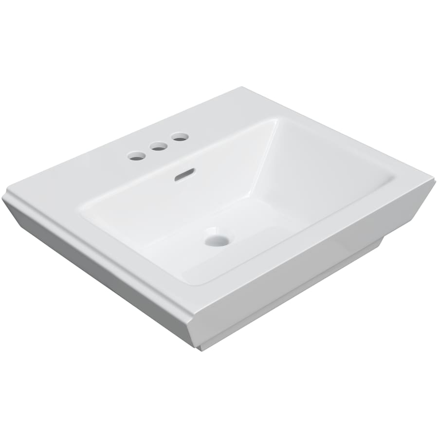 - Sink comes pre-drilled with 3 faucet holes for faucets with 4" faucet centers