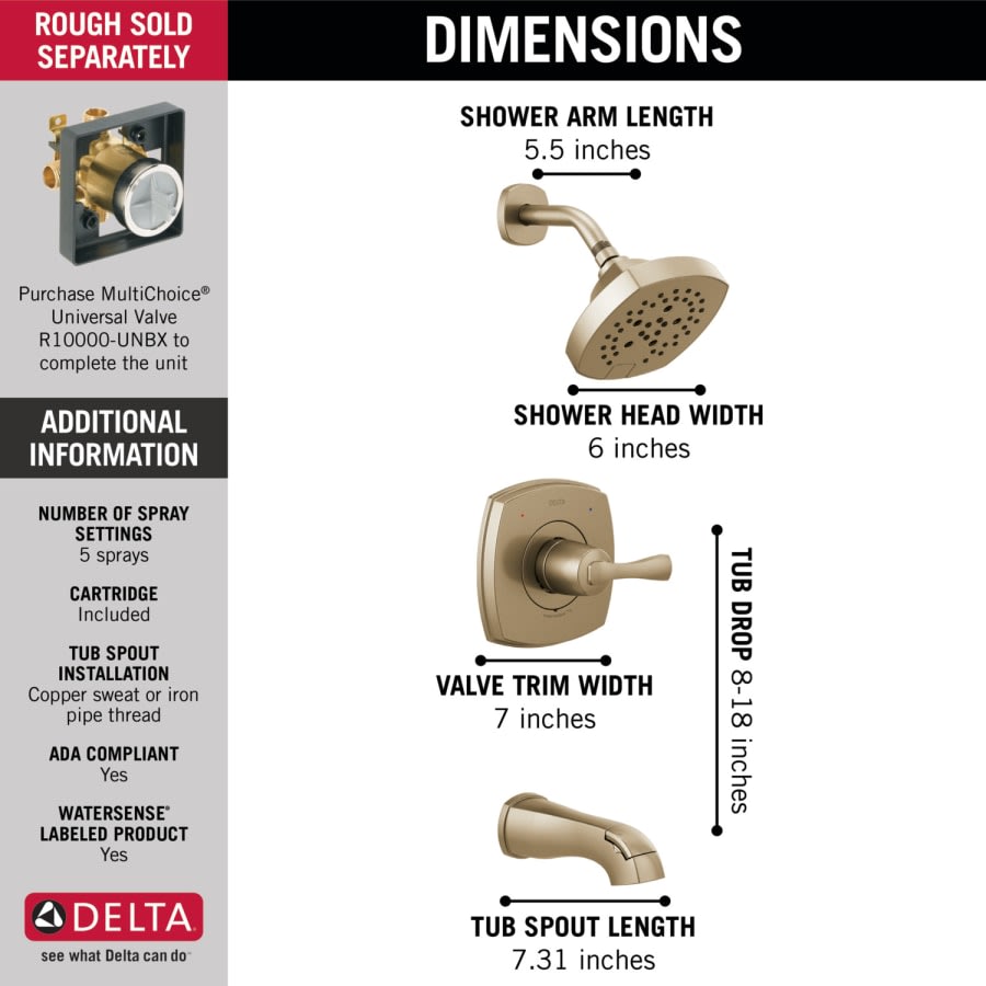 Stryke Monitor 14 Series Single Function Pressure Balanced Tub and Shower - Less Rough-In Valve