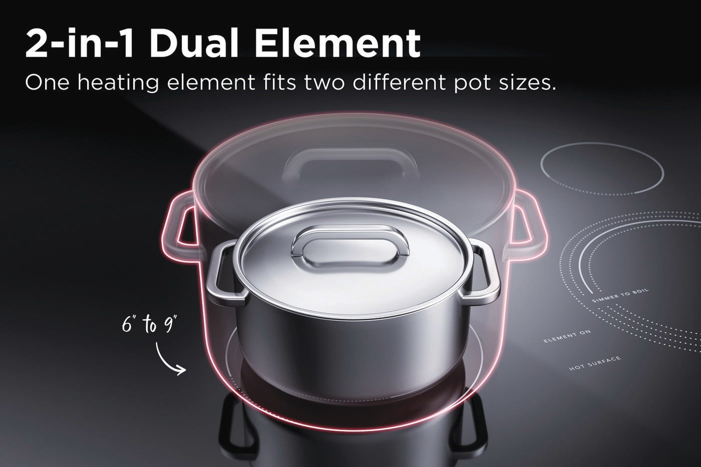 This electric range features a versatile cooktop, including a powerful Quick Boil Element and 2-in-1 Dual Expandable element.
