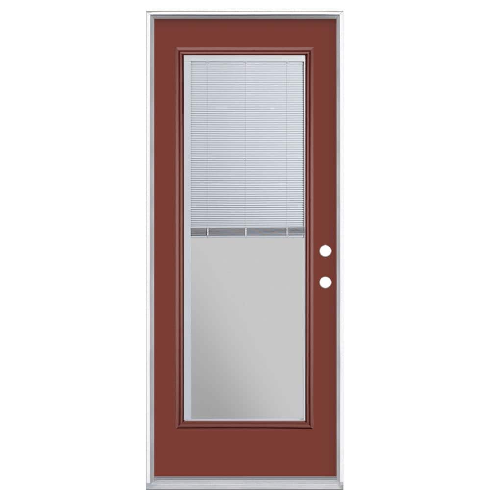 Enjoy the strength of steel and the elegance of decorative glass with the Masonite Mini Blind Painted Steel Entry Door with No Brickmold. The glass design enhances both the appearance and value of your home without compromising security or privacy. High-definition panels closely replicate the appearance of a high-end wood door with excellent shadow lines for added architectural interest. Masonite colors complement Behr paints color palette to easily coordinate your door with shutters, trim and more.