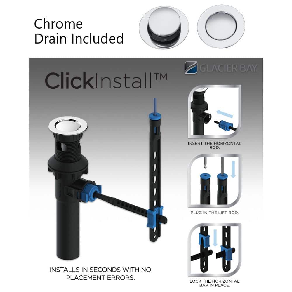 This Glacier Bay Aragon Single Handle Low-Arc Bathroom Faucet in Chrome is durable with an easy to clean finish. It is efficiently designed to meet WaterSense criteria with a 1.2 GPM water flow rate to conserve water while maintaining peak performance. The single lever design makes the faucet easy to operate while the low-arc spout leaves plenty of room for washing hands. This faucet features the Glacier Bay exclusive ClickInstall drain for quick and simple installation.