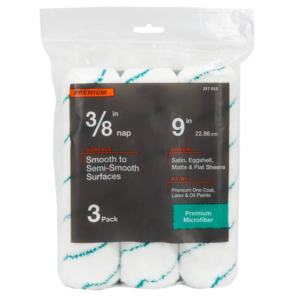 9 in.x 3/8 in.Microfiber Paint Roller Cover (3-Pack)