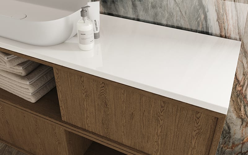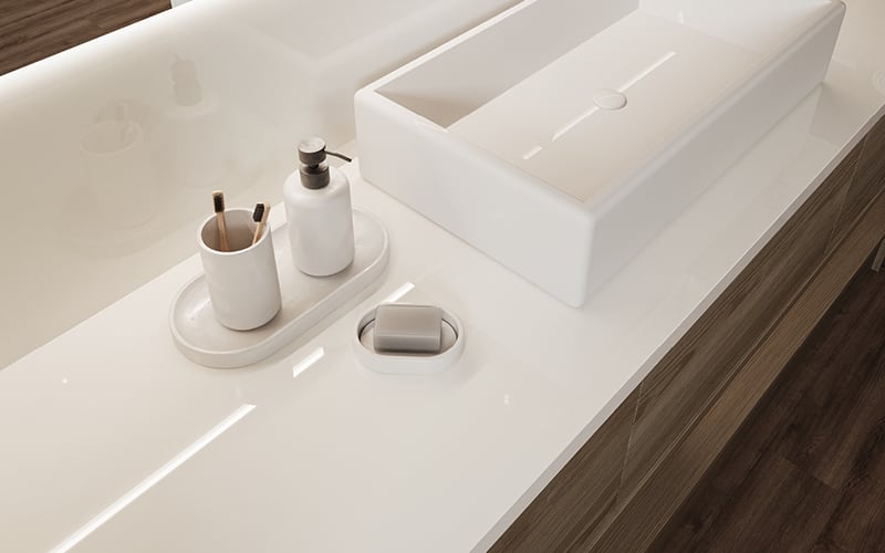 Snow White is a pristine addition to the VIATERA palette, offering a brighter and more seamless aesthetic compared to Cotton White. This purely white quartz features an almost chip-free surface, capturing the essence of untouched snow. Snow White brings a luminous clarity that elevates any space with its refined simplicity, making it an ideal choice for a sleek, modern look.