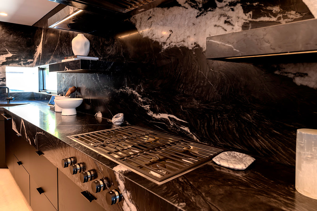 Experience the timeless elegance of Andes Black Quartzite, a stunning natural stone that embodies both sophistication and style. With its beautiful black background and dramatic white veins, this high-end surface material is perfect for elevating your quartzite countertops, walls, floors, and other decorative applications to the next level. This versatile material is not only on-trend but also highly durable, with minimal maintenance and sealing only needed once a year. Whether you’re looking to upgrade your home or office space, Andes Black is the perfect choice for high-traffic areas. Its remarkable resistance to scratches, stains, and heat ensures that your countertops remain in pristine condition for years to come. This natural stone’s durability and versatility make it an excellent choice for indoor and outdoor residential and commercial environments.