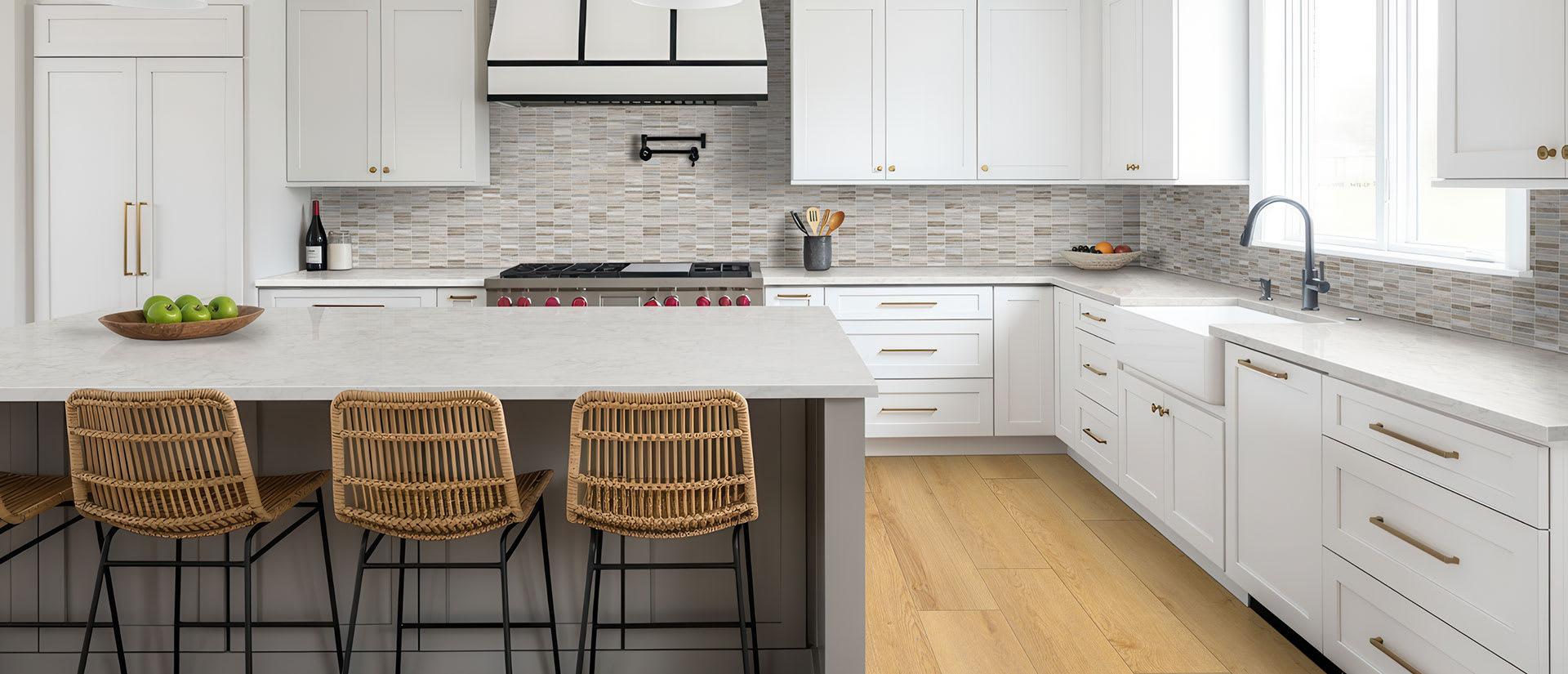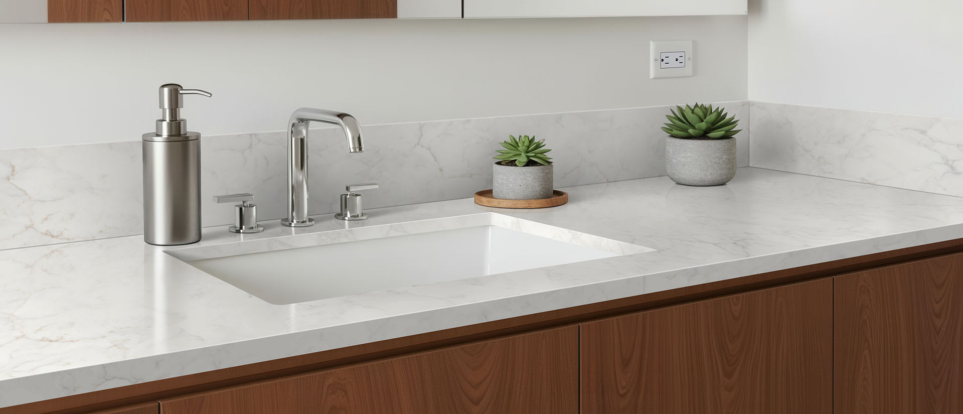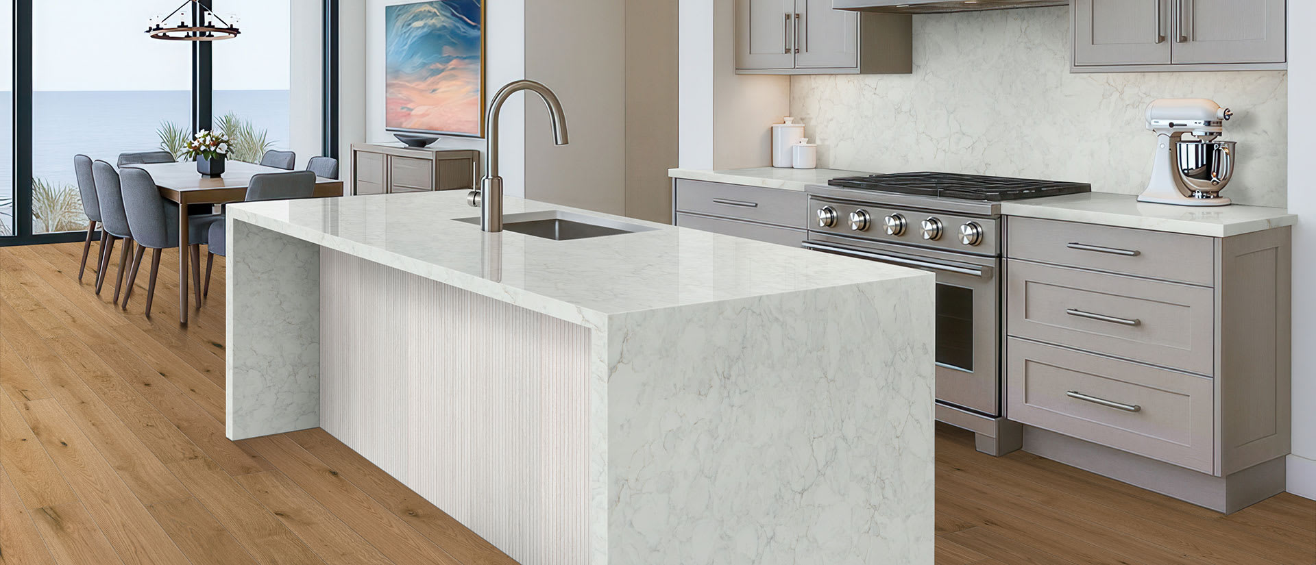 Experience the refined allure of Calacatta Fioressa from the Bocage Collection, featuring a sophisticated interplay of white and gray tones, accentuated by bold veins of darker gray and gold. Using patented technology to create the most realistic cracked veins against a marbled background, this surface is crafted for those who value subtlety in their countertop selections. Its delicate veining complements a variety of applications, from countertops to matching backsplashes, waterfall islands, and accent walls. Offering rich depth and easy upkeep, Calacatta Fioressa blends durability with elegance, available in both 2 cm and 3 cm slabs to ensure enduring beauty in any space.