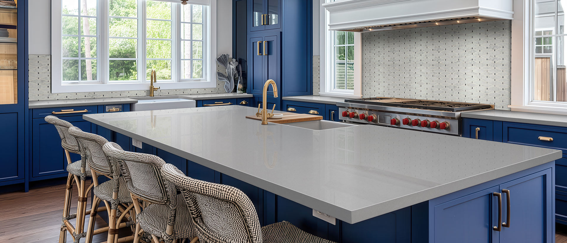 Meridian Gray Quartz features a low variation mid-tone gray background with subtle flecks that add interest and depth. This neutral quartz complements a broad range of design styles and installations, coordinating with a wide array of other quartz, natural stone, porcelain, and mosaics from MSI. Durable, low-maintenance, and stain-resistant, use it to craft stunning quartz countertops, waterfall islands, accent walls, and more inside homes and commercial properties.