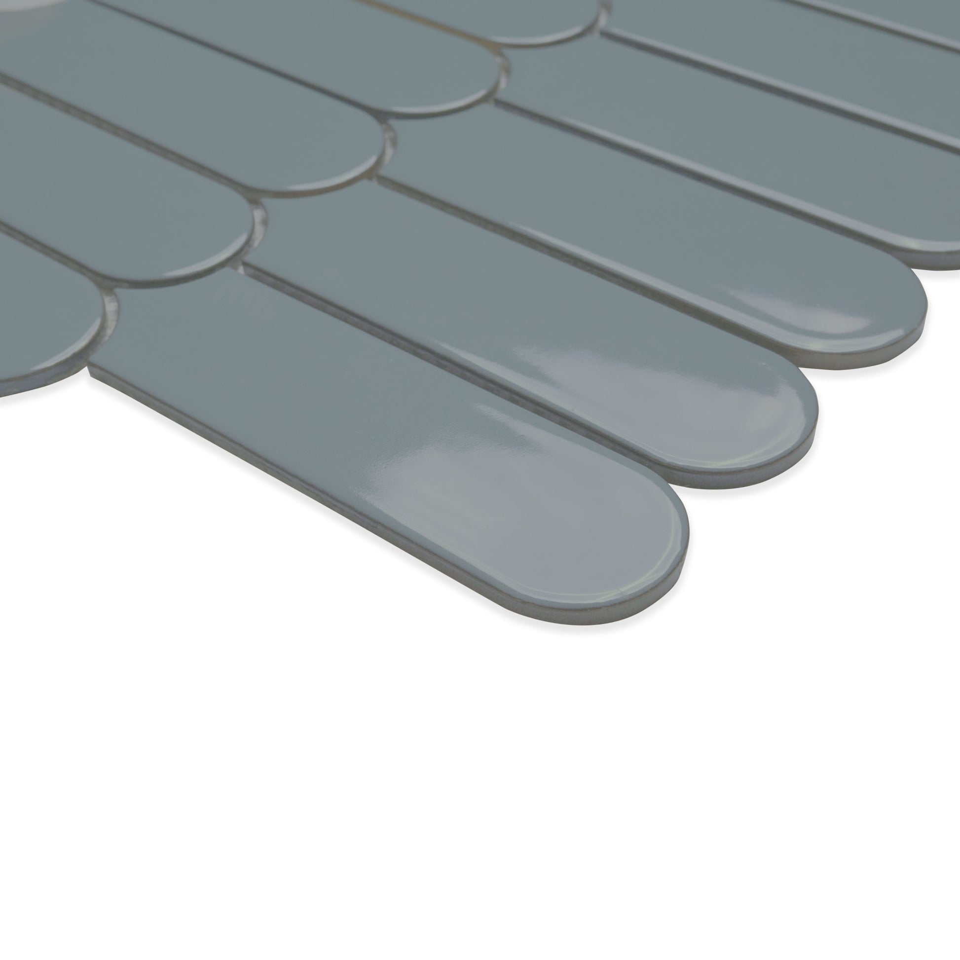 Cielo Azul Scallop porcelain tile, featuring an elongated scallop design in vibrant turquoise with a glossy finish, transforms any space into a visual delight. The mosaic's mesh-back ensures easy installation, making it an excellent choice for accent walls, backsplashes, and residential floors in kitchens, bathrooms, laundry rooms, and beyond. Perfect for both residential and commercial applications, this versatile tile brings a splash of color and a touch of elegance to any setting.