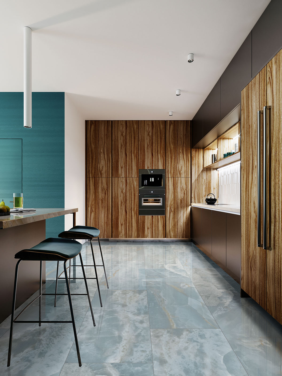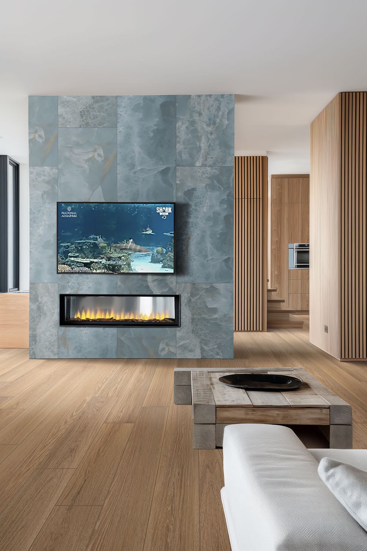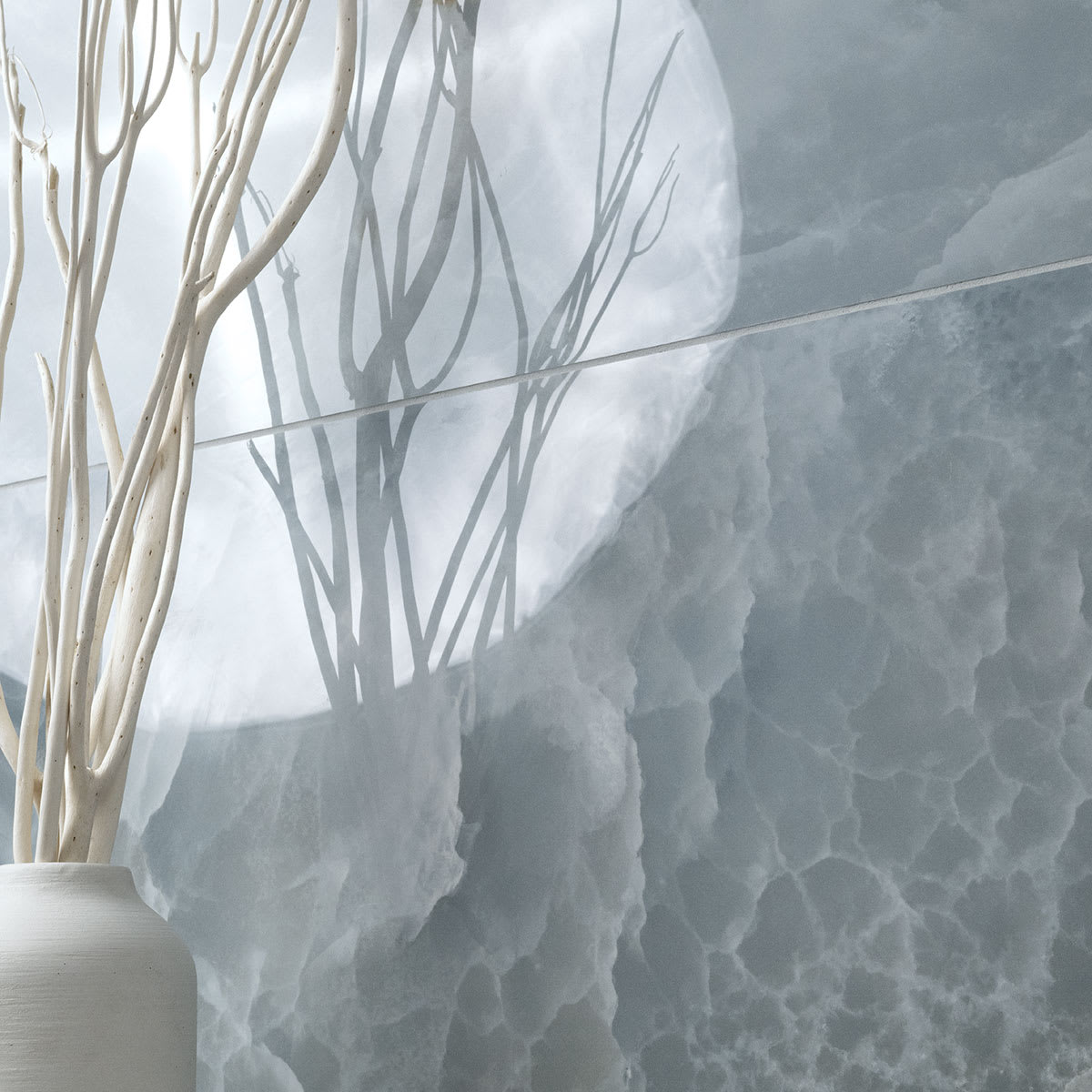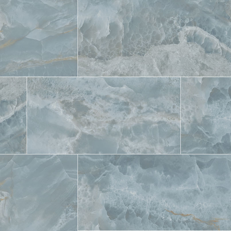 Uncover the undeniable allure of Biotite Porcelain Tile, featuring striking 24” x 48” dimensions that awaken an interest. Carefully crafted to capture the essence of onyx, this tile’s light blue, white, and rustic gold tones flow together with soft veining, reminiscent of waves gently meeting the shore. Ideal for elevating both floors and walls in any room or space, its rectified edges create smooth, clean lines with minimal grout for a flawless look. The gleaming surface brings a touch of elegance, balancing style and functionality. Simple to install yet delivering remarkable results, this tile is a versatile and timeless addition to any interior.