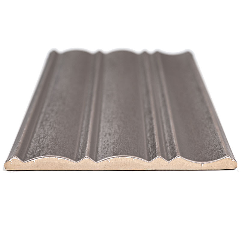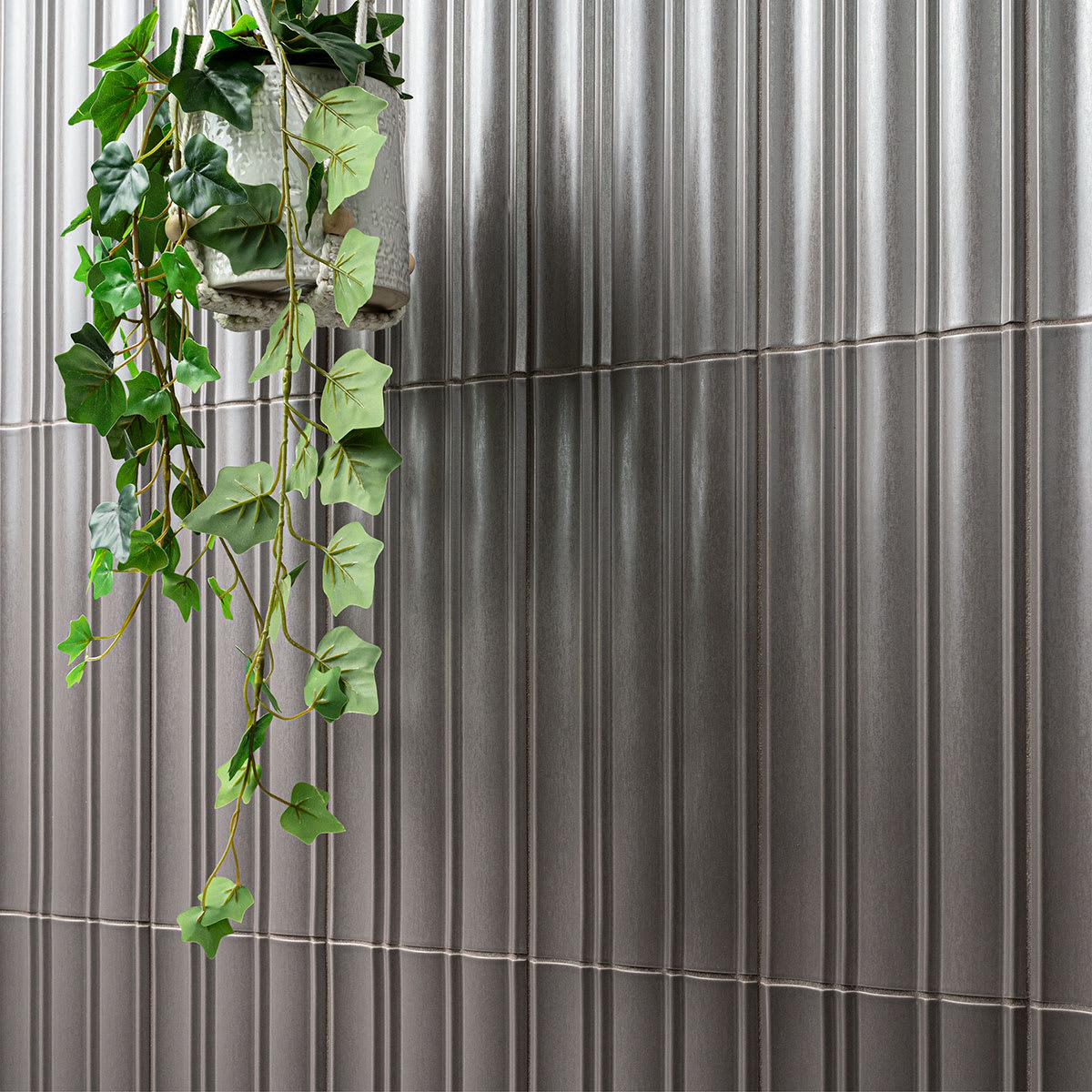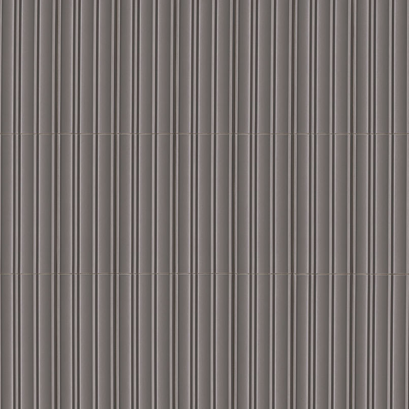 Against a dark gray backdrop, Folk Charcoal Fluted Tile presents a striking 3D extruded design with concave and convex elements, complemented by a satin finish that enhances its vintage allure. Infusing any space with vibrancy, this fluted tile seamlessly installs with matching grout. This fluted tile is perfect for kitchen backsplashes, beneath bar tops, or an accent wall, adding depth and character to your decor scheme.