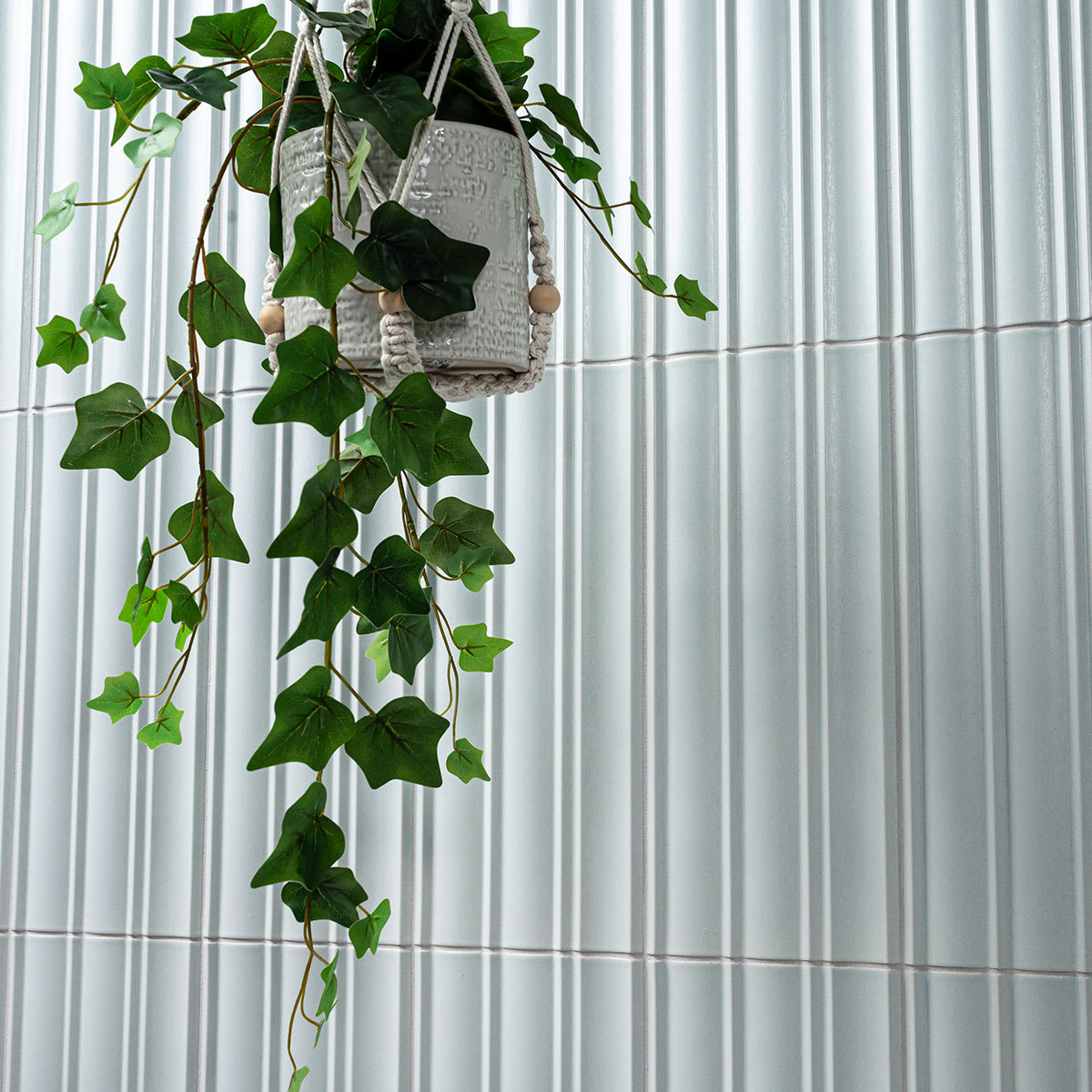 Featuring a pastel blue backdrop, Folk Sky Fluted Tile boasts a captivating 3D extruded design with concave and convex elements, all highlighted by a satin finish. These fluted wall panels have a vintage vibe, adding a charming and vibrant touch. Seamless installation with matching grout ensures a refined look, making this fluted tile ideal for kitchen backsplashes, beneath bar tops, or as accent walls throughout your home. It is perfect as fluted wall tile adds a distinctive character to modern interiors.