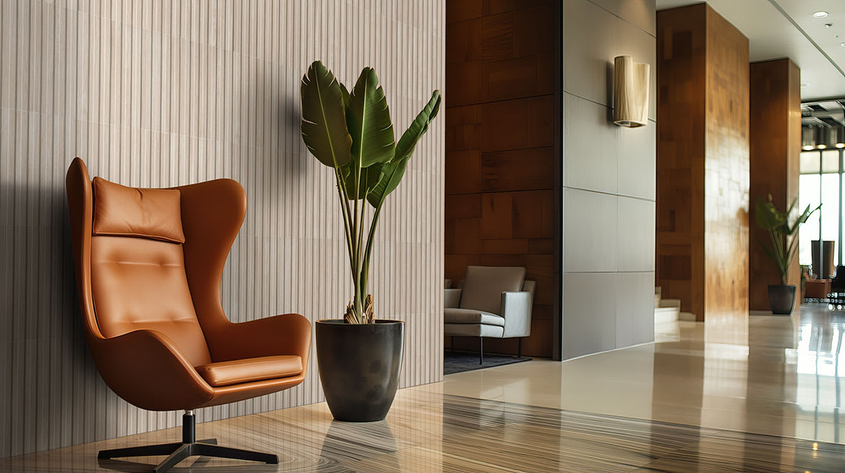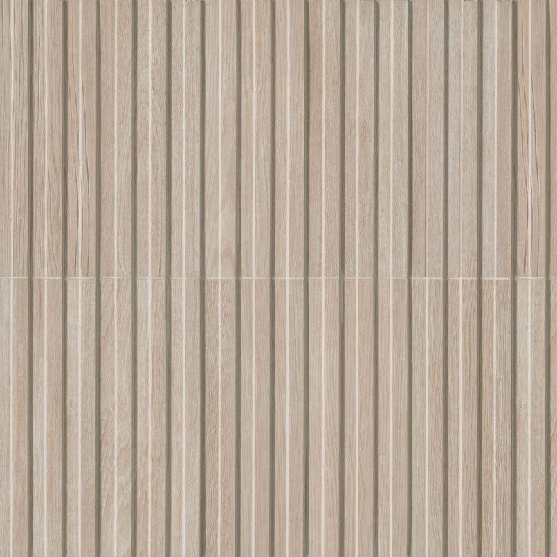Hip Hop Abedul Fluted Tile embodies timeless sophistication, showcasing a blonde wood appearance adorned with delicate grains that evoke natural charm. Its textured surface and matte finish seamlessly blend modern elegance with a touch of traditional allure. This fluted tile has a 3D effect that enhances its visual appeal, crafting captivating interplays of light, especially in well-lit areas such as kitchens or patios. Suitable for vertical installations like accent walls, backsplashes, fireplace facades, and more, these fluted wall panels elevate the aesthetic of residential and commercial spaces, adding a touch of refined luxury to any environment, whether indoors or outdoors.