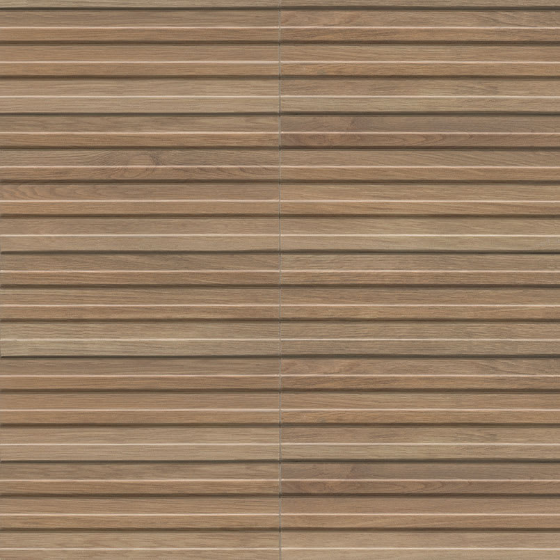 Hip Hop Camel Fluted Tile exudes timeless sophistication, with a rich brown wood appearance highlighted by delicate grains that offer a natural charm. These fluted wall panels feature a textured surface and a matte finish to blend modern elegance with a touch of traditional allure. This fluted tile has a 3D effect that enhances its visual appeal, creating captivating light interplays, especially in well-lit areas like kitchens or patios. These tiles suit indoor and outdoor settings and are ideal for vertical applications such as fluted wall panels, accent walls, backsplashes, or fireplace facades. Elevating residential and commercial spaces brings understated luxury to any environment.