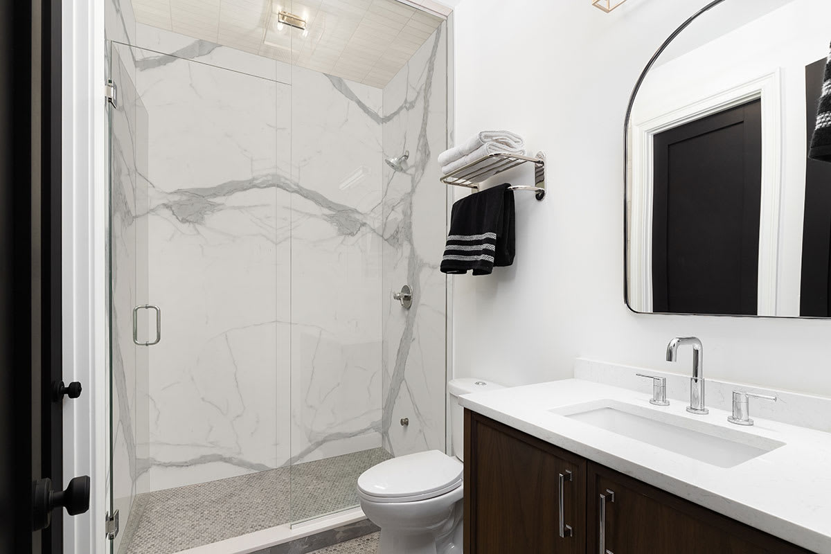 Add refinement to your washrooms with Montblanc Statuario tub and shower surrounds. Each 4-piece set is available in two dimensions including 31.5x71 and 31.5x94.5 porcelain panels feature a cool, white background with robust gray veins that cohesively align between each slab to create an elegant design. With a polished finish, this sophisticated set of panels offers the favored look of marble with the durability and affordability of porcelain tile. Make your shower an oasis with these water, scratch and stain-resistant porcelain slabs. Suitable for residential and commercial spaces, this marble-look tile is perfect for indoor and outdoor use.