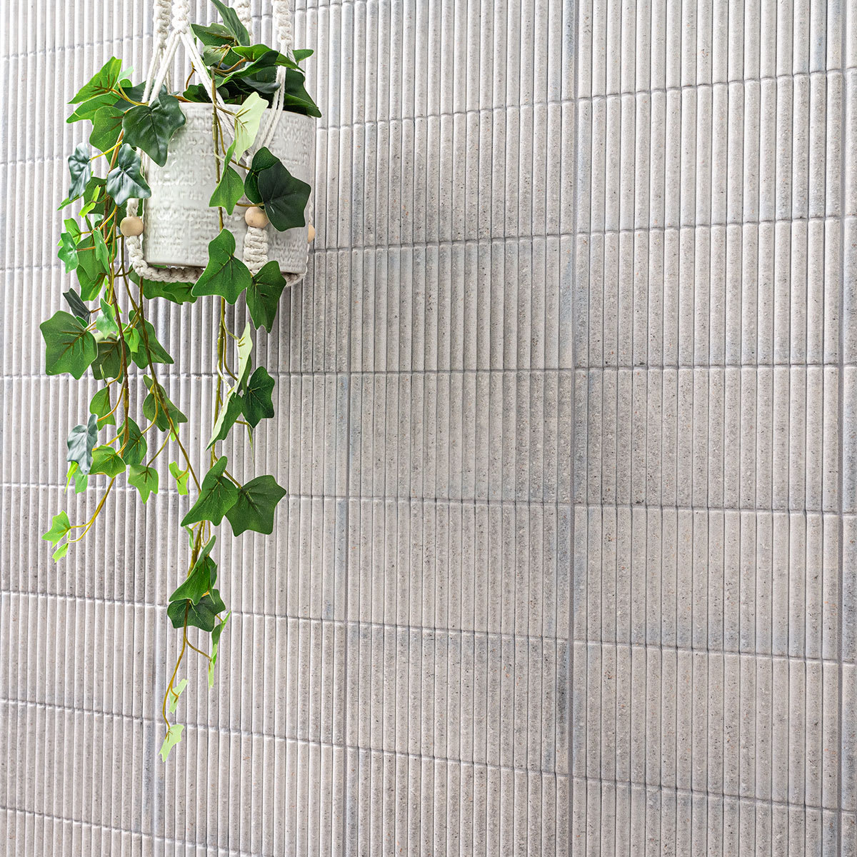 Artfully crafted, the Piano Ceniza Fluted Tile exudes timeless sophistication with its gray limestone-inspired appearance. Its meticulously textured surface, enhanced by a matte finish, seamlessly blends modern elegance with a hint of traditional charm. The intricate 3D fluted effect elevates its visual appeal. It creates captivating light dynamics, making it an excellent choice for fluted wall panels in well-lit areas like outdoor kitchens or patio retreats. Ideal for vertical installations such as pillar walls, backsplashes, pool surrounds, and more, this fluted tile enhances the aesthetic appeal of both residential and commercial spaces, indoors and outdoors.
