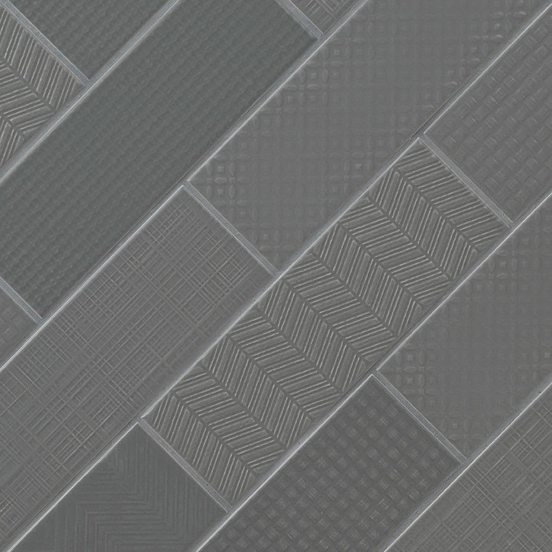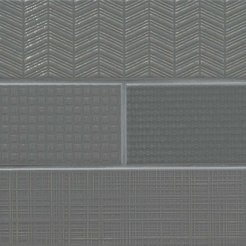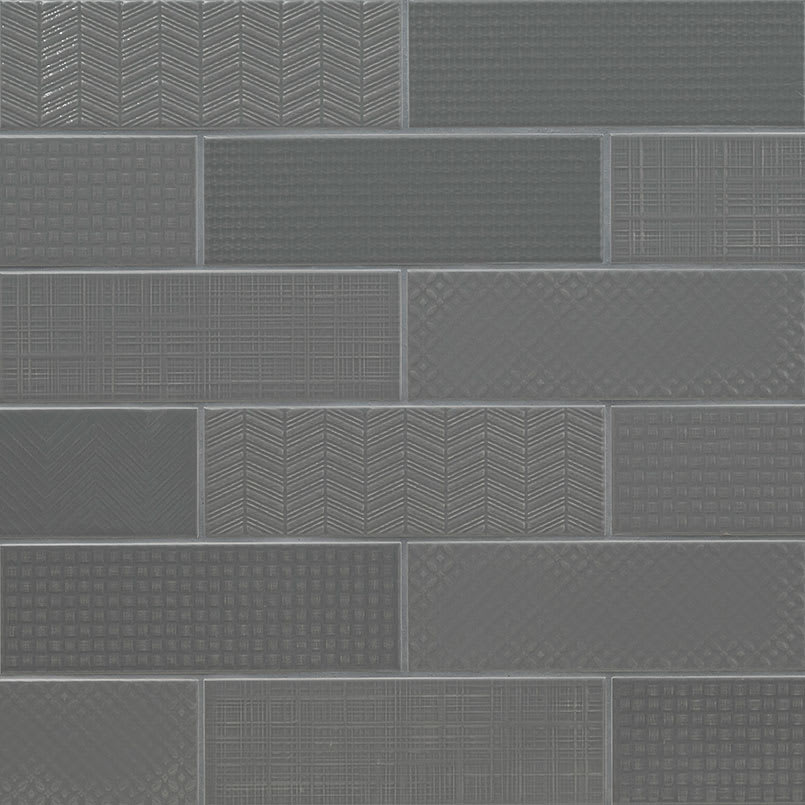 Urbano Graphite 3d Mix Tile is a ceramic subway tile with a dark gray background and four 3-dimensional designs. The oversized 4x12 backsplash tile from Portugal come in a polished finish that highlights the 3D effect. These wall tiles will jazz up any kitchen or bathroom backsplash or feature wall in a residential or commercial space.