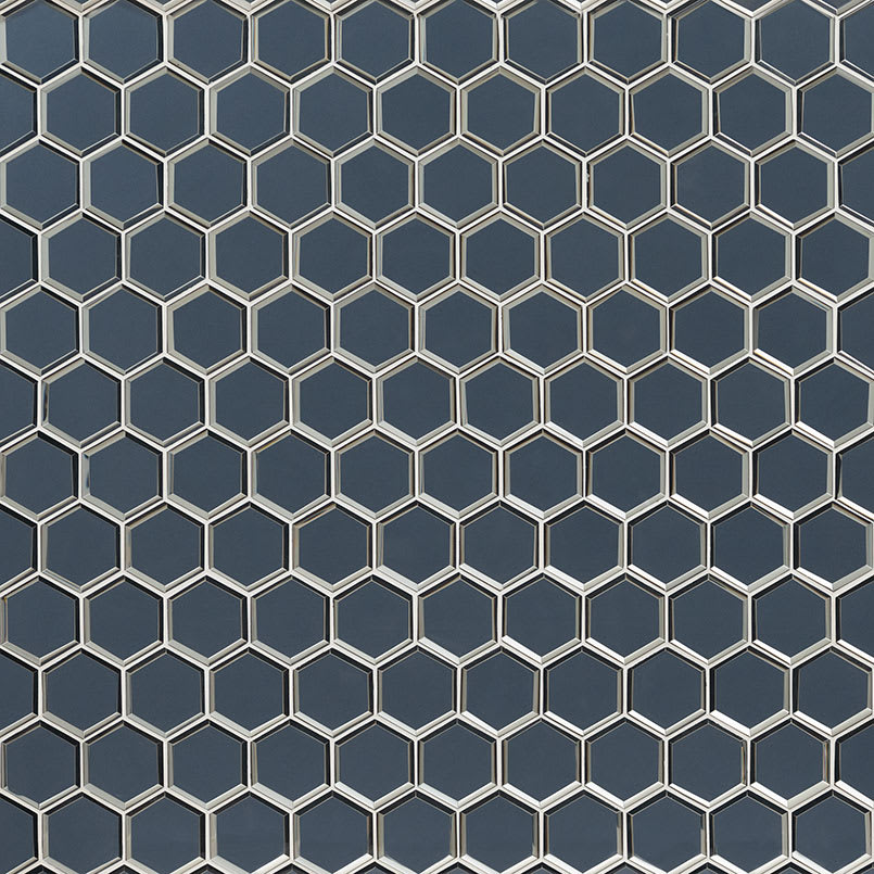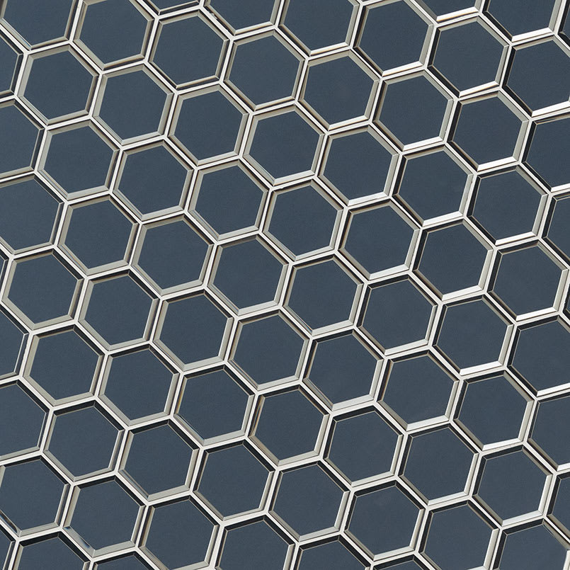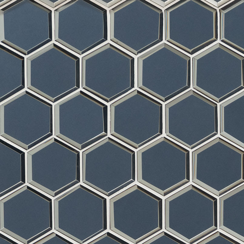 Add drama and interest to your space with Vague Blue 3” Hexagon Mosaic Tile. A striking take on the classic hexagon shape, this glass mosaic features a deep grey blue tile with beveled edges for enhanced impact. It’s the perfect choice for your kitchen backsplash, bar area, shower surround, bathroom vanity wall and more. Not only stylish, but also durable and low maintenance, Vague Blue Beveled 3” Hexagon Mosaic Tile updates your home or commercial project with contemporary colors and the brilliance of glass tile. Tiles are strategically arranged on mesh backed sheets for simplified installation and professional look.