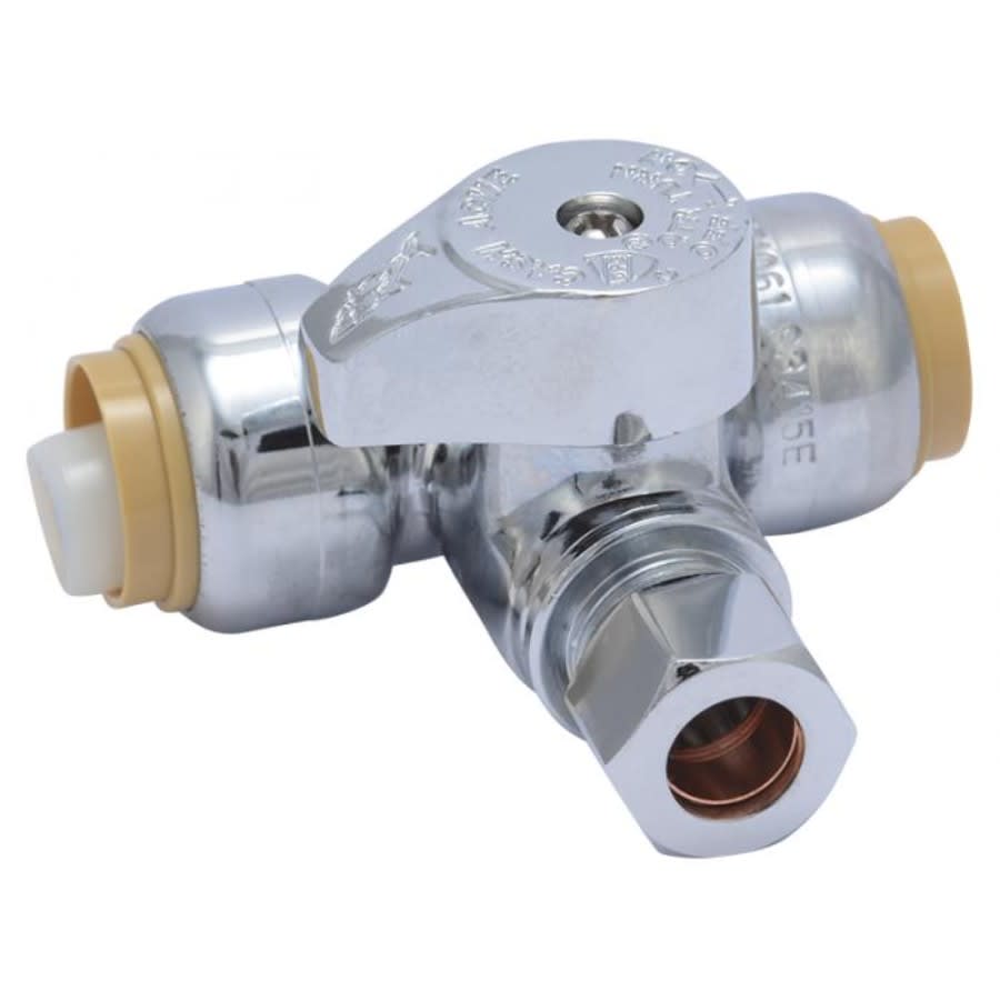 Quarter Turn Tee Stop, 1/2 x 3/8 in, Push x Comp, Chrome