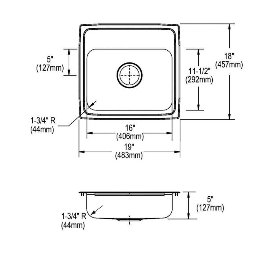 Lustertone™ Classic Single Bowl Kitchen Sink, Top Mount, ADA, 19 x 18 in, 4-7/8 in Bowl Depth, 1-Hole, 18 ga Lustrous Satin Steel, Stainless