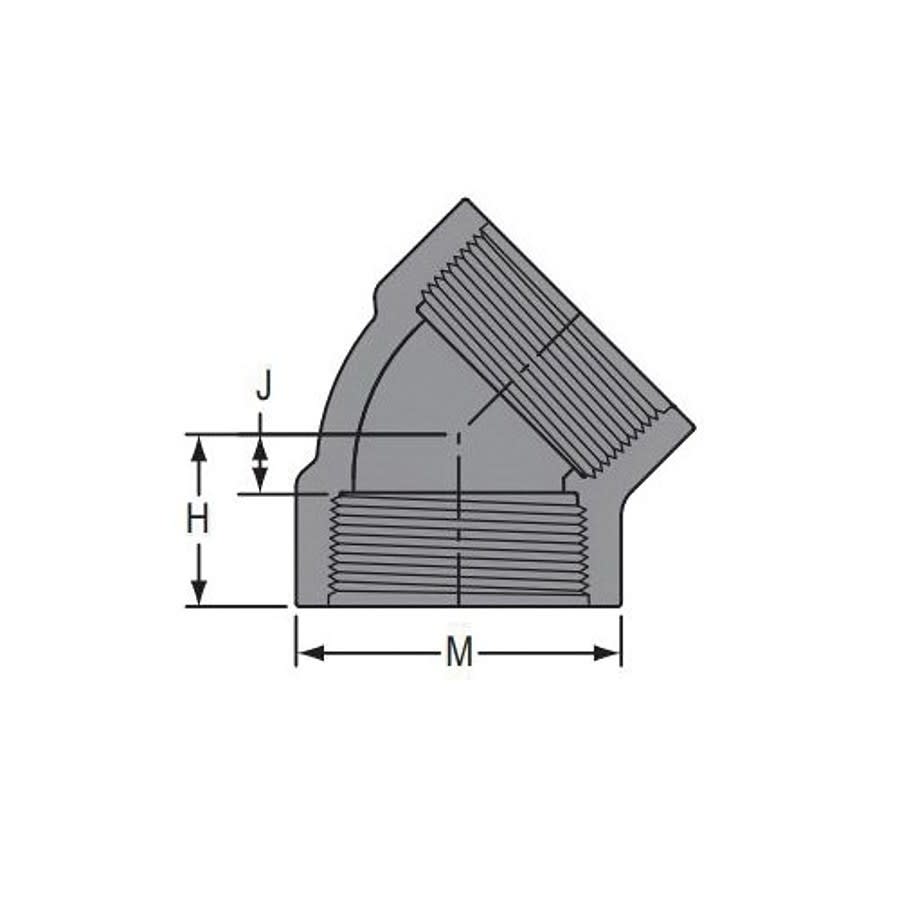 45 deg Elbow, 3/4 in, FNPT, SCH 80/XH, PVC
