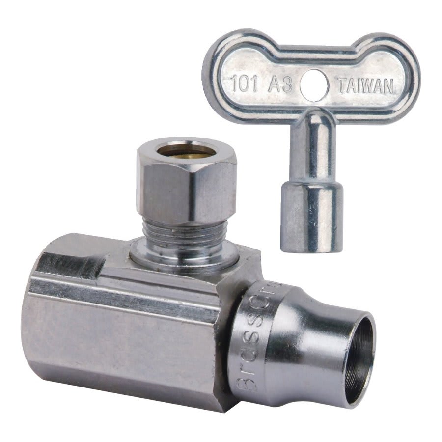Multi Turn Angle Stop, Loose Key, 1/2 x 3/8 in, FNPT x Comp, Chrome