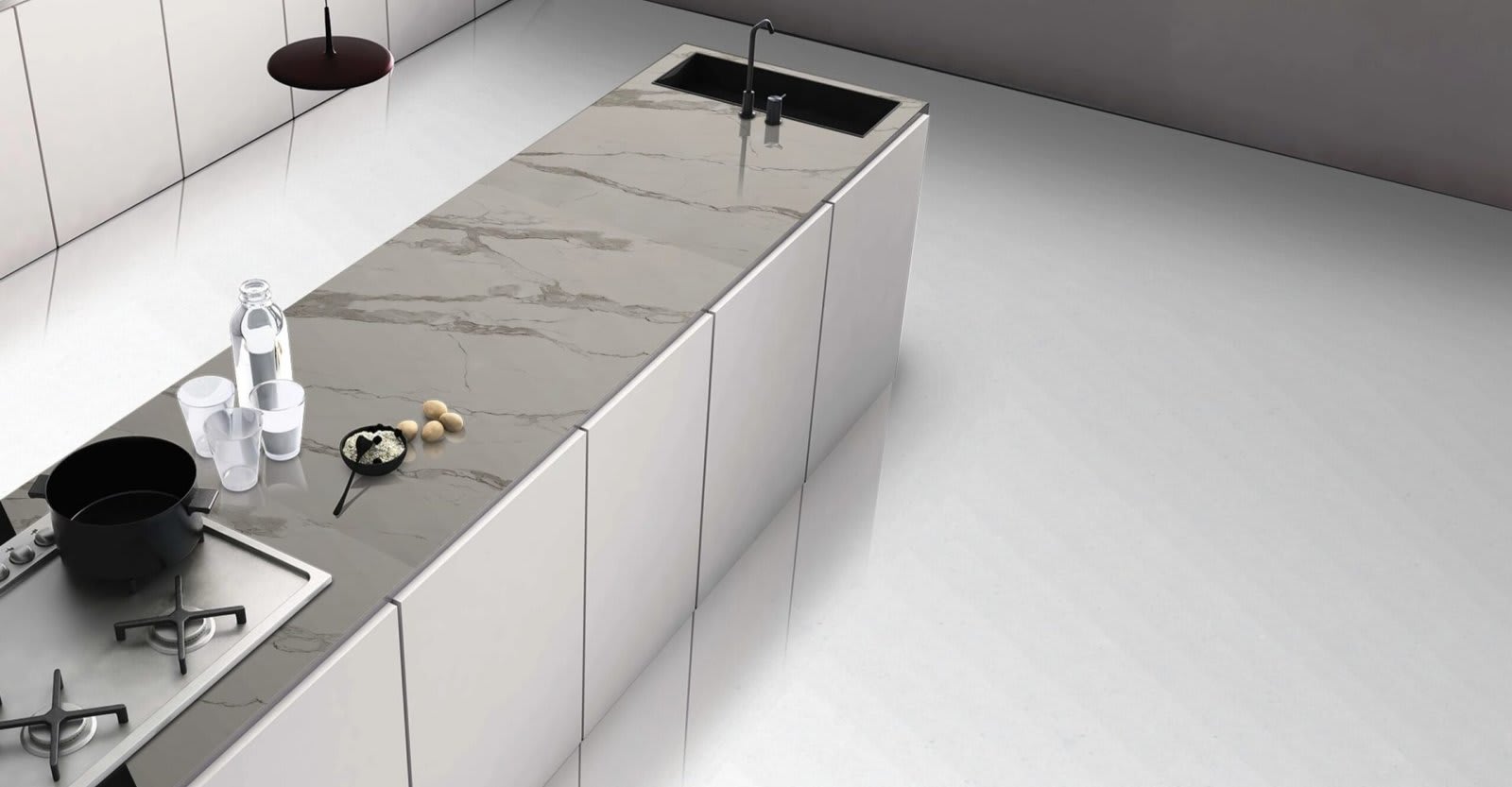 Affordable high-end looks and life-long durability come together in Calacatta Zembrino. This polished marble-look quartz features a soft white background and widely spread veins for unstoppable elegance. It’s the perfect choice for creating white quartz countertops, ready to harmonize with nearly any color scheme or design style.