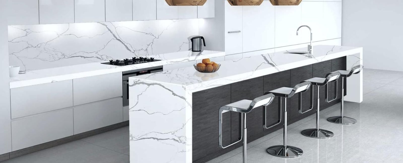 Affordable high-end looks and life-long durability come together in Venato Classic Quartz. This polished marble-look quartz features a soft white background and widely spread veins for unstoppable elegance. It’s the perfect choice for creating white quartz countertops, ready to harmonize with nearly any color scheme or design style.