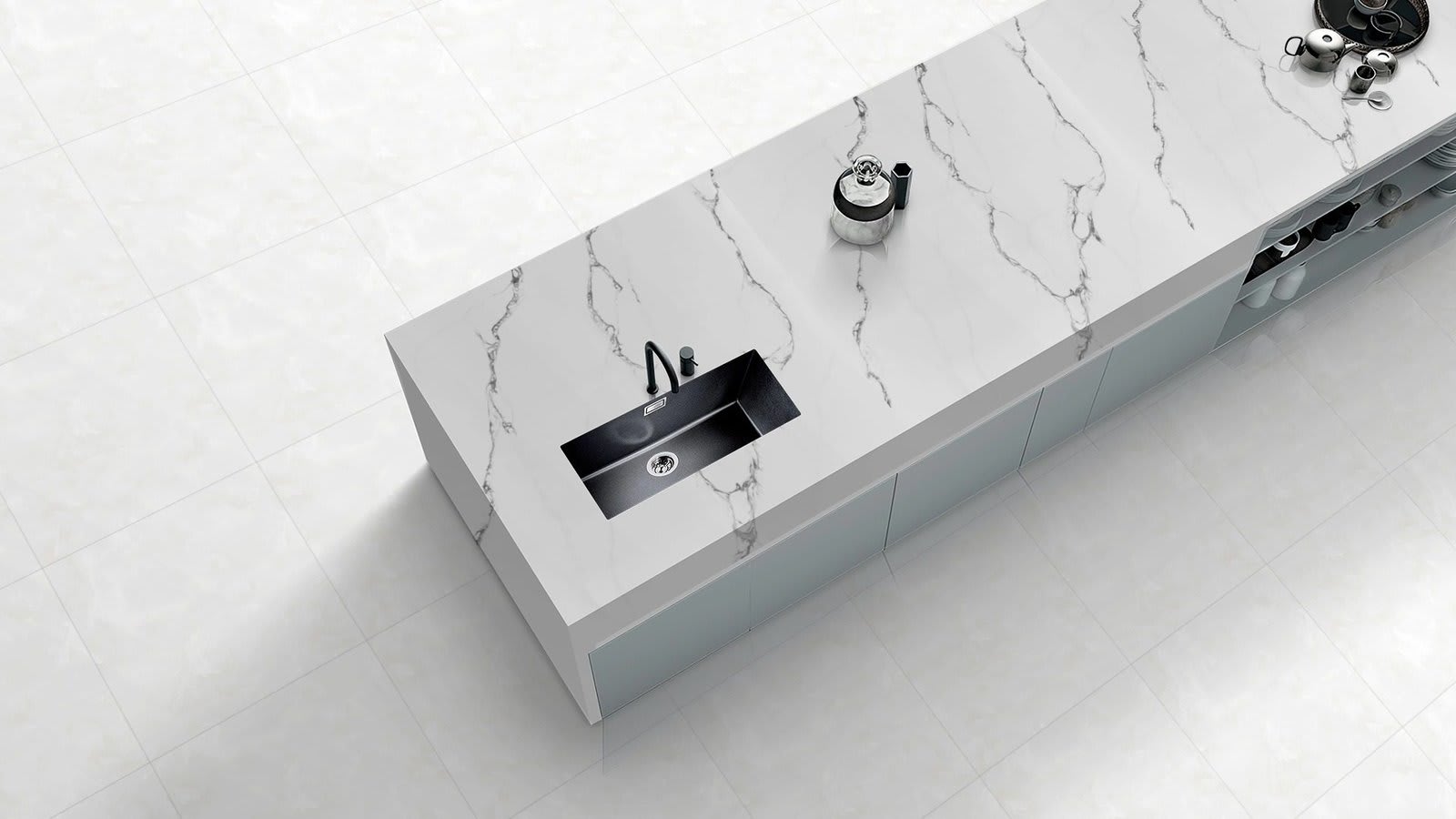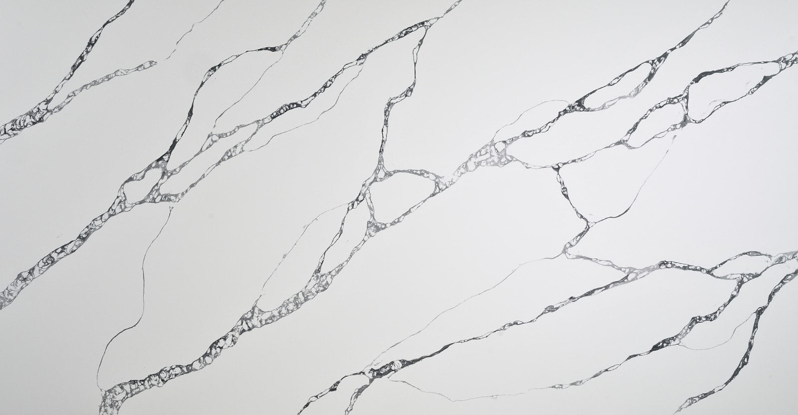 Affordable high-end looks and life-long durability come together in Venetian Black Quartz. This polished marble-look quartz features a soft white background and widely spread veins for unstoppable elegance. It’s the perfect choice for creating white quartz countertops, ready to harmonize with nearly any color scheme or design style.