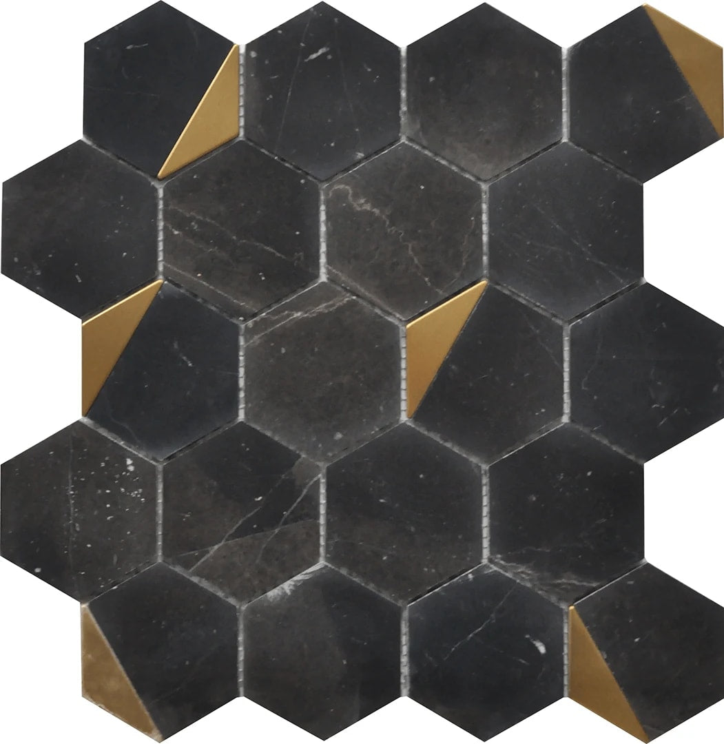 NERO MARQUINA HEXAGON 12X13 MOSAIC