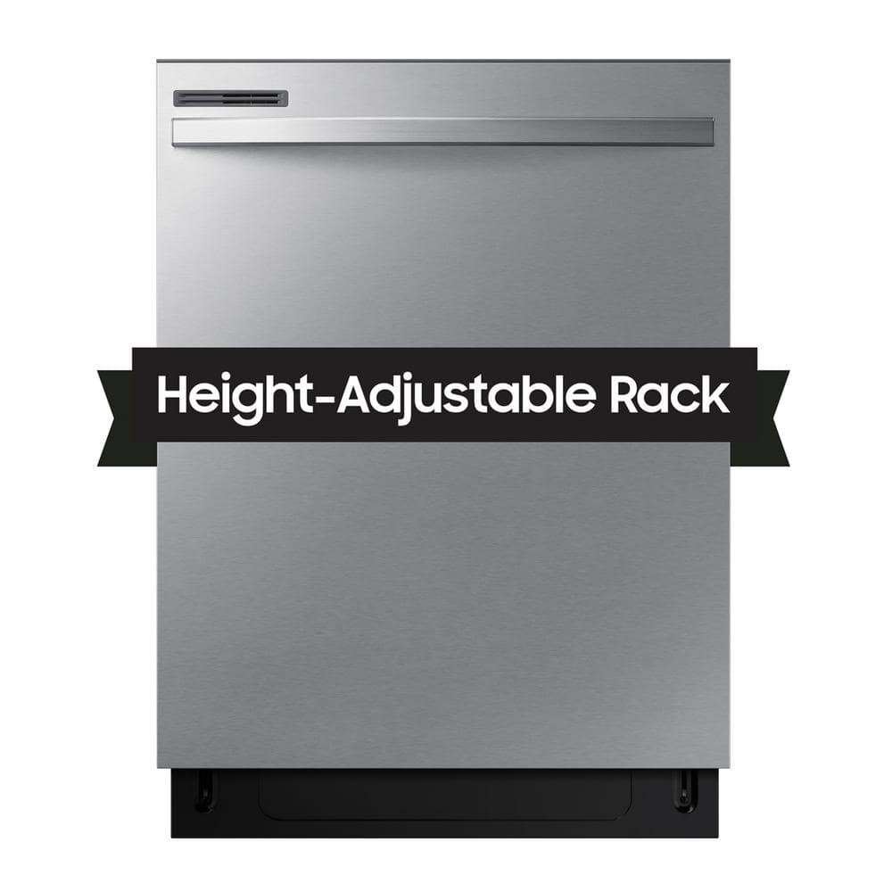 - Height-adjustable upper rack makes it easy to accommodate various dishware shapes and sizes.